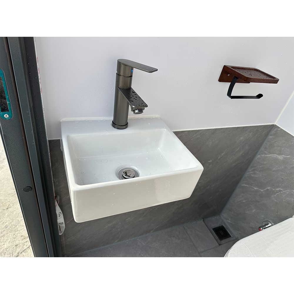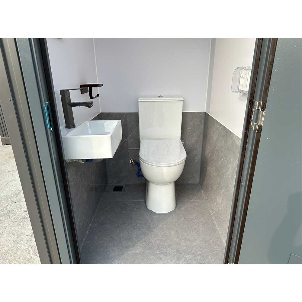 This premium single outdoor bathroom is built for durability, comfort, and mobility. Designed with built-in forklift pockets, it's easy to transport and install on construction sites, public events, or remote locations. The structure is insulated, weather-resistant, and equipped with essential interior amenities.